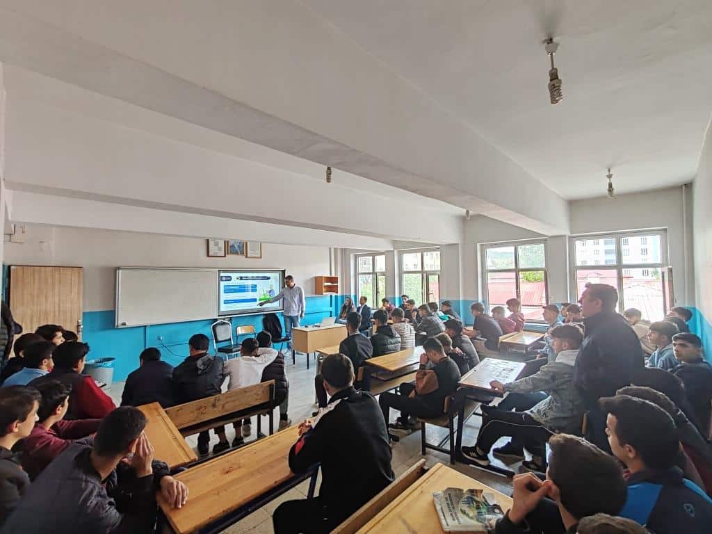 İl KOSGEB Müdürlüğü yetkilileri tarafından okulumuzda gerçekleştirilen bilgilendirme etkinliği kapsamında, öğrencilerimize işyeri açma süreçleri, iş fikri geliştirme yolları ve KOSGEB destek ve teşvik programları hakkında detaylı bilgiler verildi.